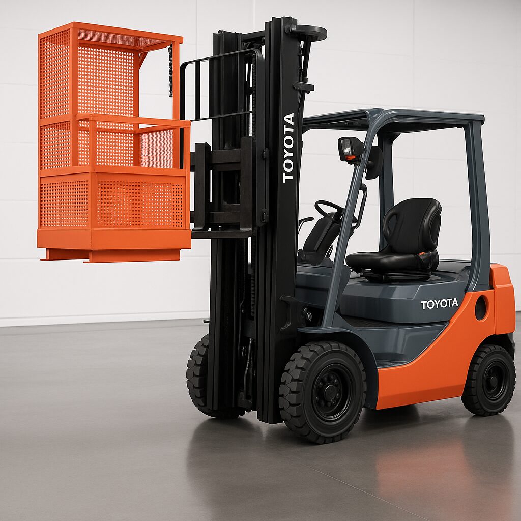 סל הרמה איכותי למלגזה, המיועד לביצוע עבודות בגובה בצורה בטוחה, יציבה ונוחה.